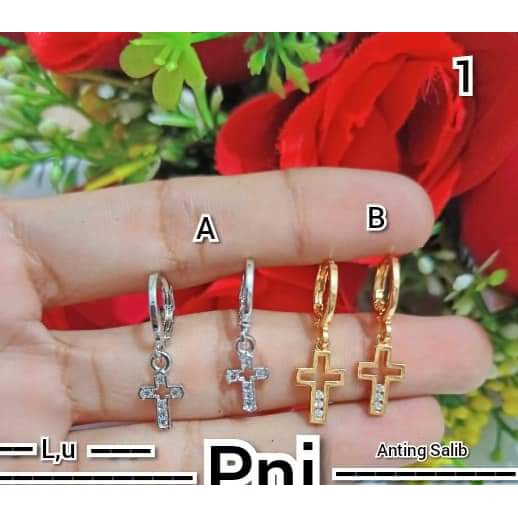 Detail Anting Salib TITANIUM Dewasa Varian Motif Perhiasan Wanita Gold dan Silver (COD)