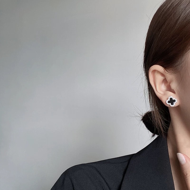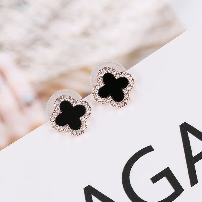 Detail Anting Semanggi Empat Daun Bertabur Berlian Temperamen Kecil Sederhana Desain High-End Semua @ -