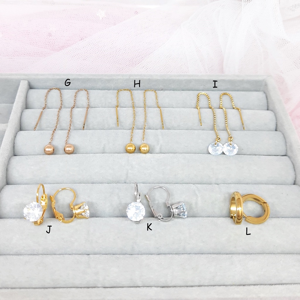 Kode: BE303 Material: stainless steel Ukuran: 2,9x1,3cm A-B Panjang 9cm, Diameter Bola Sekitar 0.3cm C Panjang 8cm, Diameter Bola Sekitar 0.6cm D Panjang 8cm, Diameter Bola Sekitar 0.6cm E Diameter Sekitar 0.5cm F Diameter Sekitar 0.4cm G-H Panjang 8cm, Diameter Bola Sekitar 0.5cm I Panjang 8cm, Diameter Bola Sekitar 0.7cm J-K Diameter Sekitar 0.7cm L diameter sekitar 1cm M-N Panjang sekitar 10cm O. Panjang sekitar 11cm P. Panjang sekitar 7cm ,Diameter boba sekitar 0,5cm ------------------------- Perhiasan berkualitas, harga murah, tampilan mewah. Semua batu yang dipakai (pada perhiasan yang ada batu) adalah batu cubic zirconia grade AAA buatan pabrik, imitasi namun tampilan mirip berlian asli. Mewah & berkilau! Sebagian perhiasan ada engraved atau tulisan s925 pada rangka namun bukan berarti didalamnya perak, hanya cetakan aja. TIDAK ADA JAMINAN SETIAP PRODUK ADA ENGRAVED S925 WALAUPUN DI FOTO ADA.