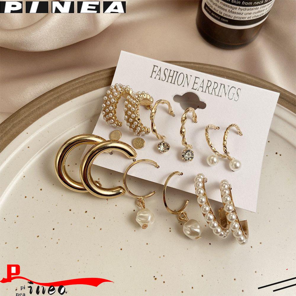 Detail Anting Set Nanas 6pasang Perhiasan Punk Mutiara Emas
