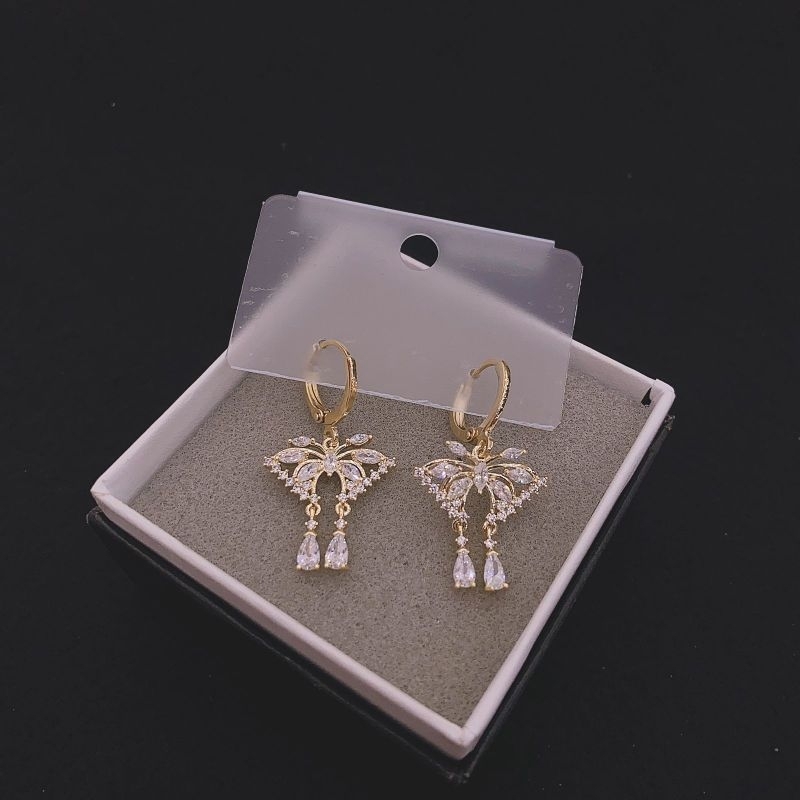 Detail Anting Silver925 Perak mata tanam kilau mirip emas asli Premium Quality Anti Karat anti alergi S27