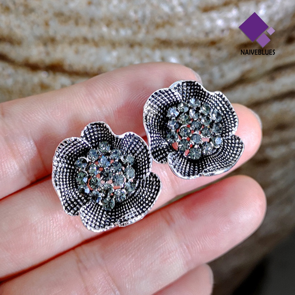 Detail Anting Stud Bentuk Bunga Mawar Aksen Berlian Imitasi Gaya Vintage Untuk Wanita