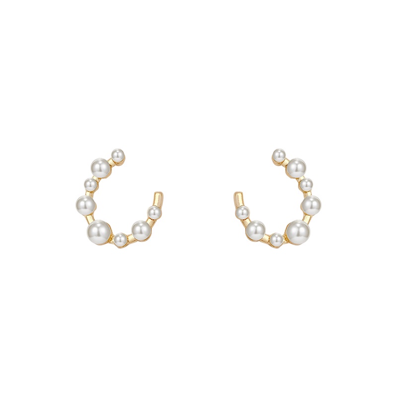 Detail Anting Stud Bentuk C Aksen Mutiara Bahan S925 Untuk Aksesoris