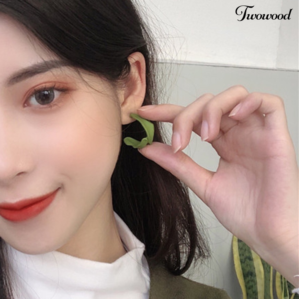 Detail Anting Stud Bentuk C Warna Hijau Tahan Pudar Untuk Kencan