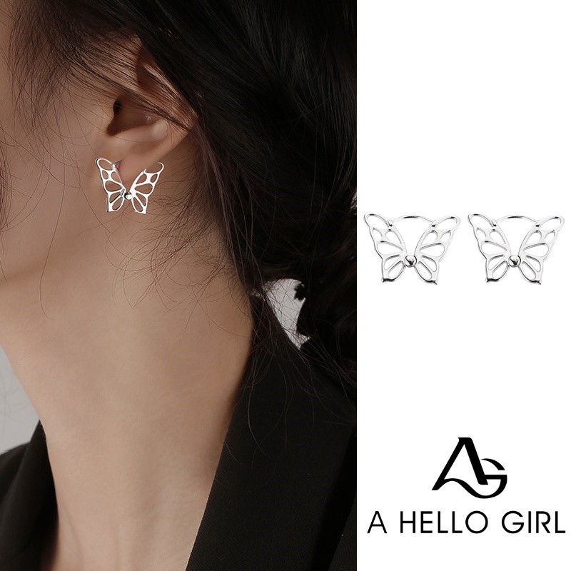 Detail Anting Stud Bentuk Kupu-Kupu Model Hollow Out Bahan Alloy Warna Silver Untuk Wanita