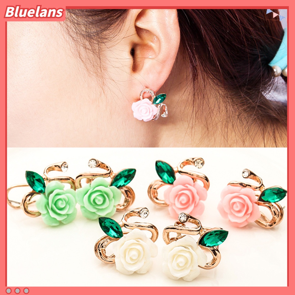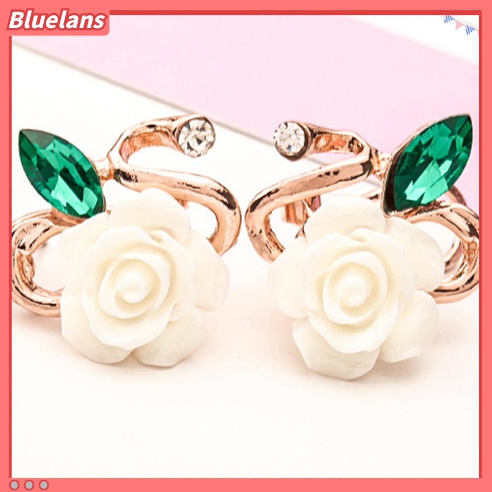 Detail Anting Stud Desain Bunga Mawar Aksen Berlian Imitasi Untuk Wanita