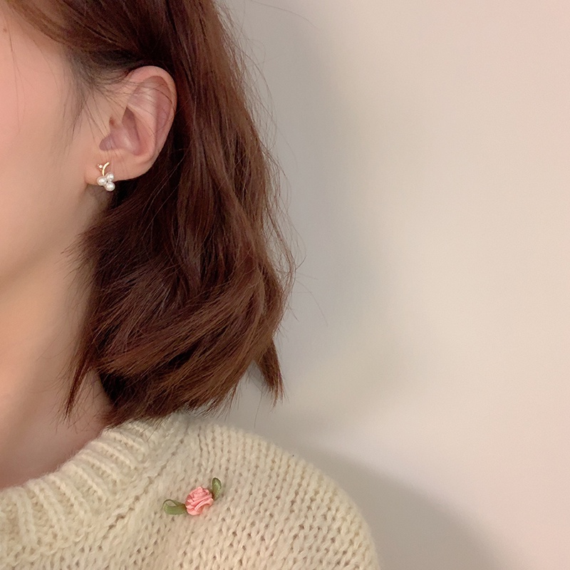 Detail Anting Stud Hias Mutiara Anggur Kecil Bahan Tembaga Gaya Korea Untuk Pria Dan Wanita