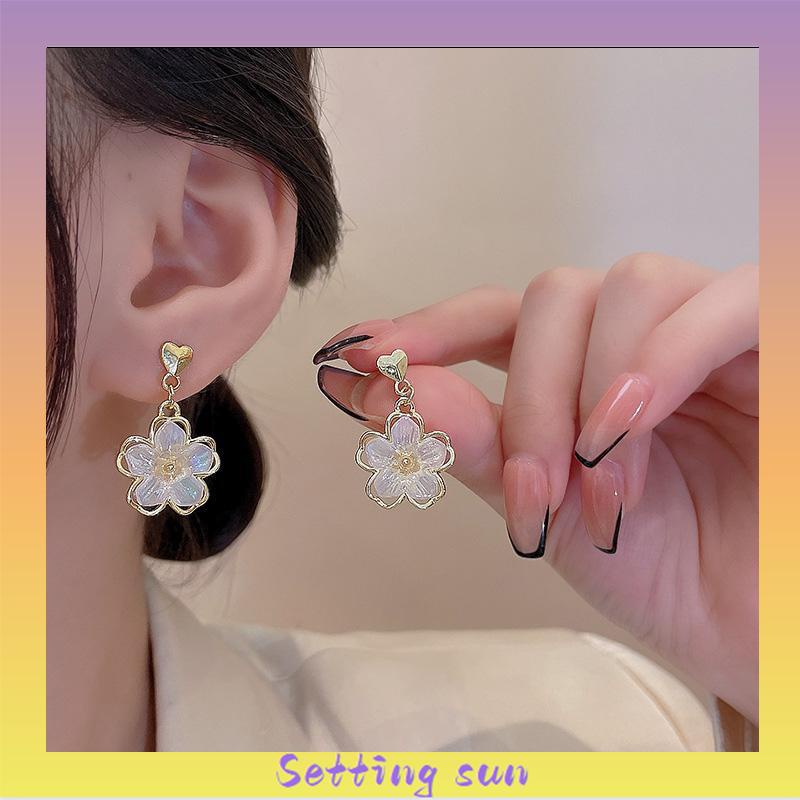 Detail Anting Stud Kristal Bunga Bahan Akrilik Fashion Korea Gaya Untuk Wanita TN