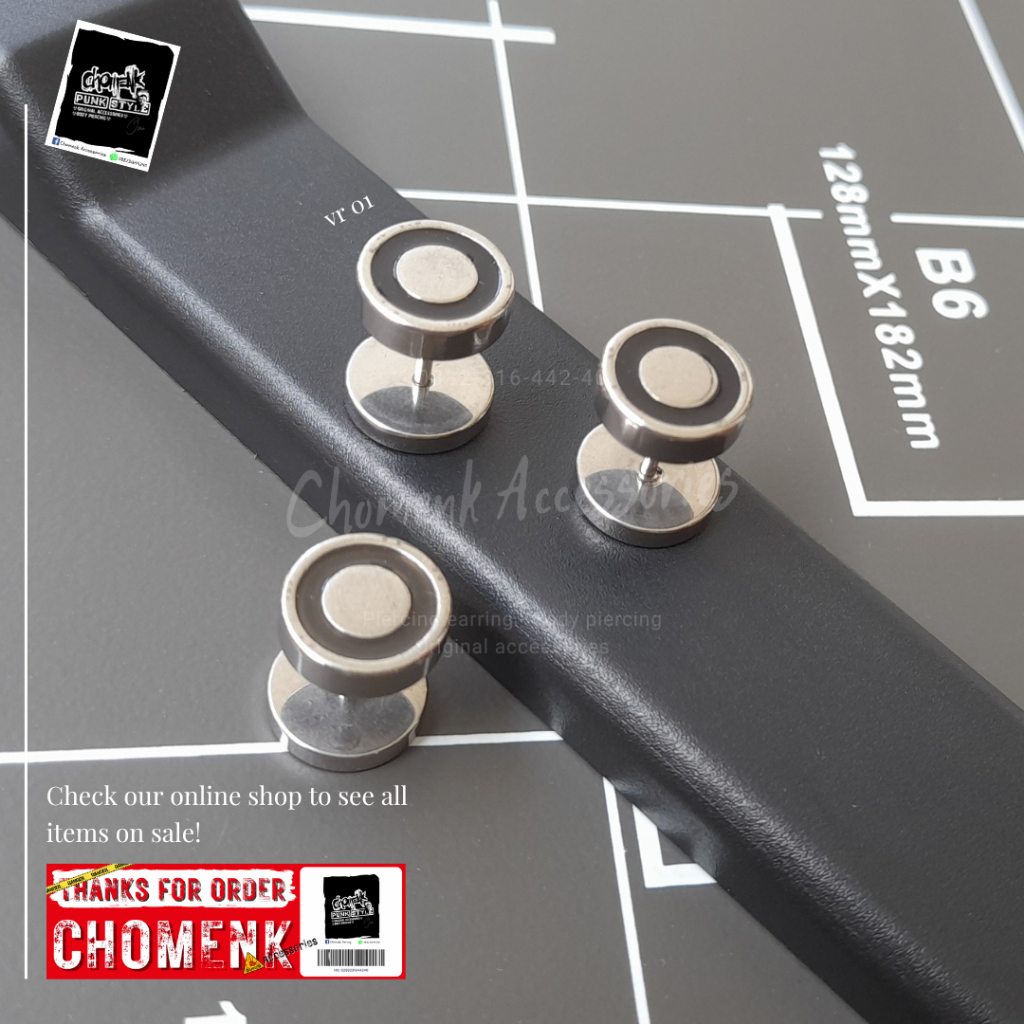 Detail anting tindik barbel silver tengah hitam titanium 8mm piercing earring anting tindik barbel silver tengah hitam titanium 8mm