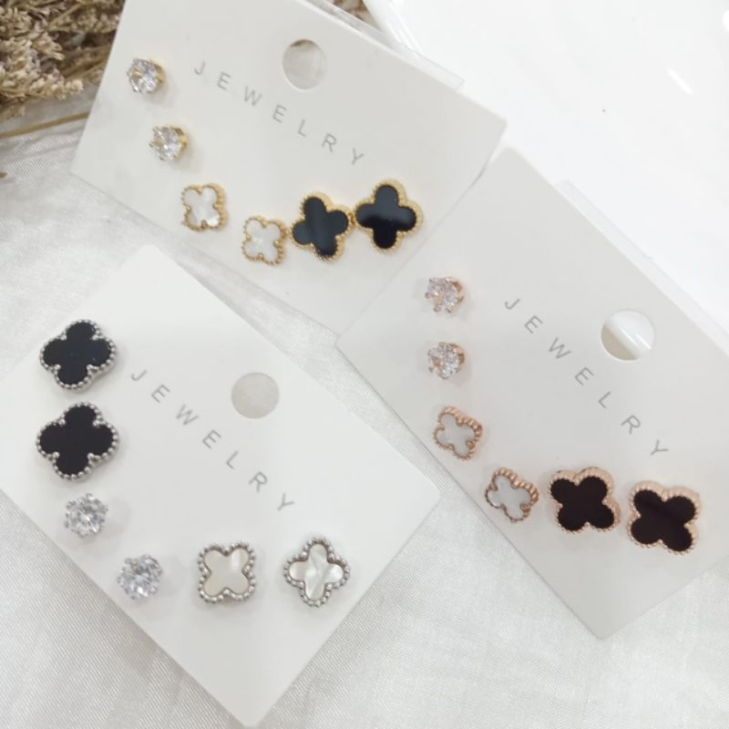 anting tusuk titanium bunga clover hitam 1set=3modelanting tusuk titanium bunga clover hitam 1set=3model