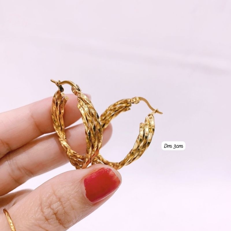 Detail Anting Titanium asli mirip emas asli Premium Quality Anti Karat Anti Alergi Anting Stainless steel Ori At29