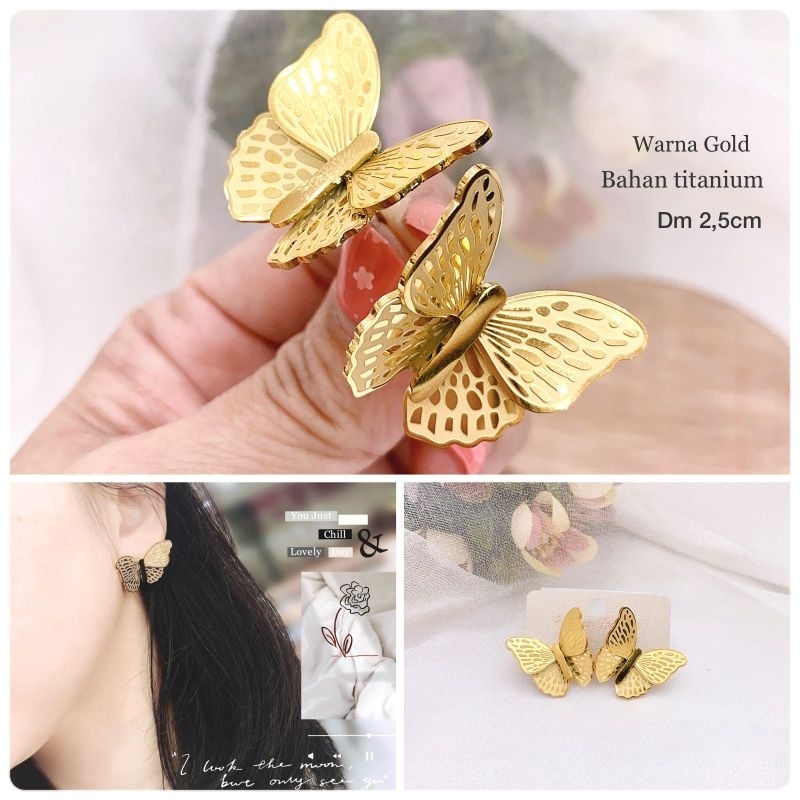 Detail Anting Titanium Asli motif kupukupu gold Anti karat anti alergi Stainless steel Premium An228