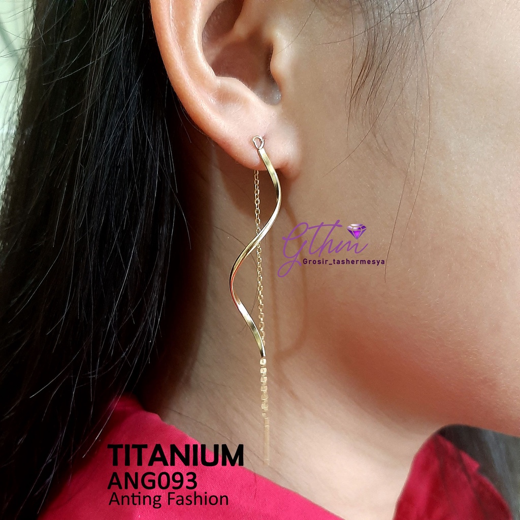Anting Titanium Spiral Jurai panjang Bahan Titanium Perhiasan Fashion Import Kualitas Premium Anti Karat Tidak menimbulkan alergi Bisa dipakai sehari-hari Model Mewah dan Elegan