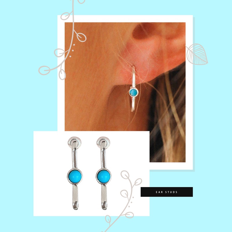 Detail Anting Tusuk Batu Biru Minimalis Untuk Wanita Warna Silver Sederhana Perempuan Aksesoris Pakaian Sehari-Hari Hadiah Bagus Perhiasan Vintage