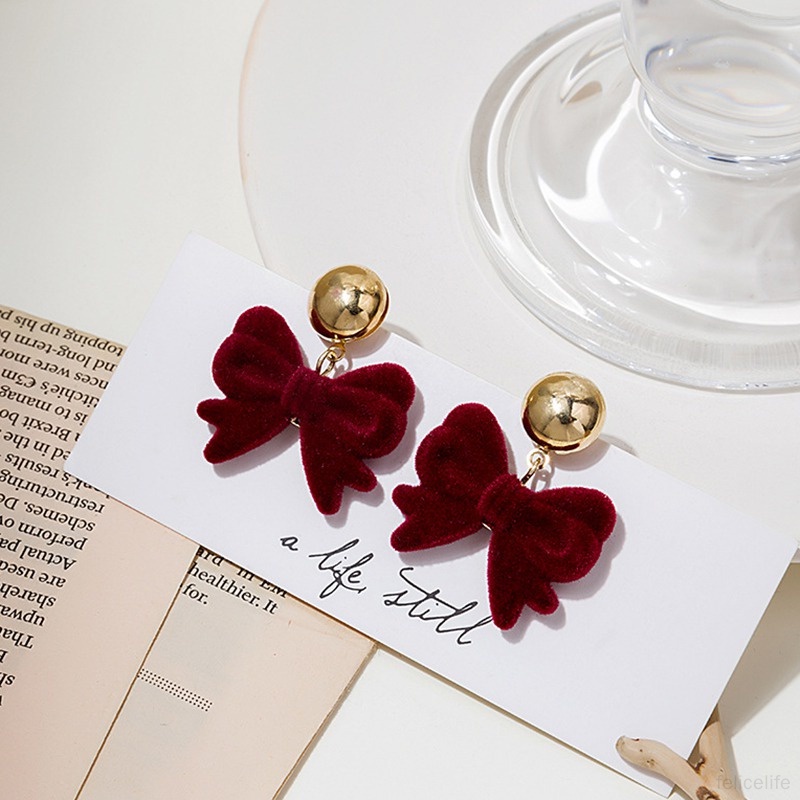 1 Fitur: fashion, retro, liontin, sederhana, indah, merah meriah, busur merah, beludru merah anggur, halus, serbaguna, kepribadian, anting-anting biasa.