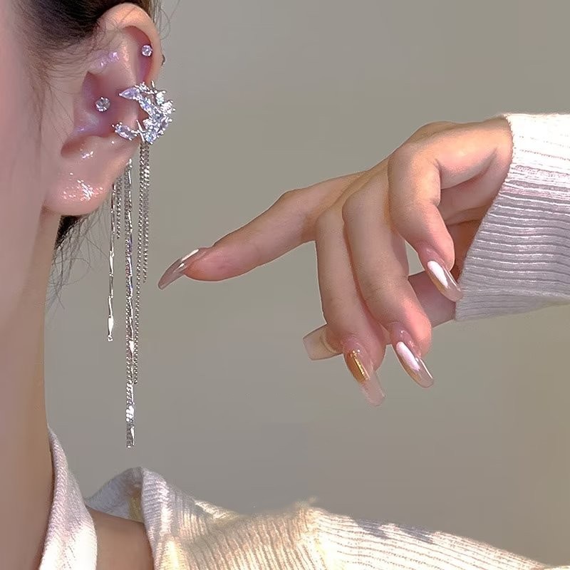 Detail Anting Tusuk Gantung Bentuk Bulan Sabit Aksen Zircon Untuk Wanita