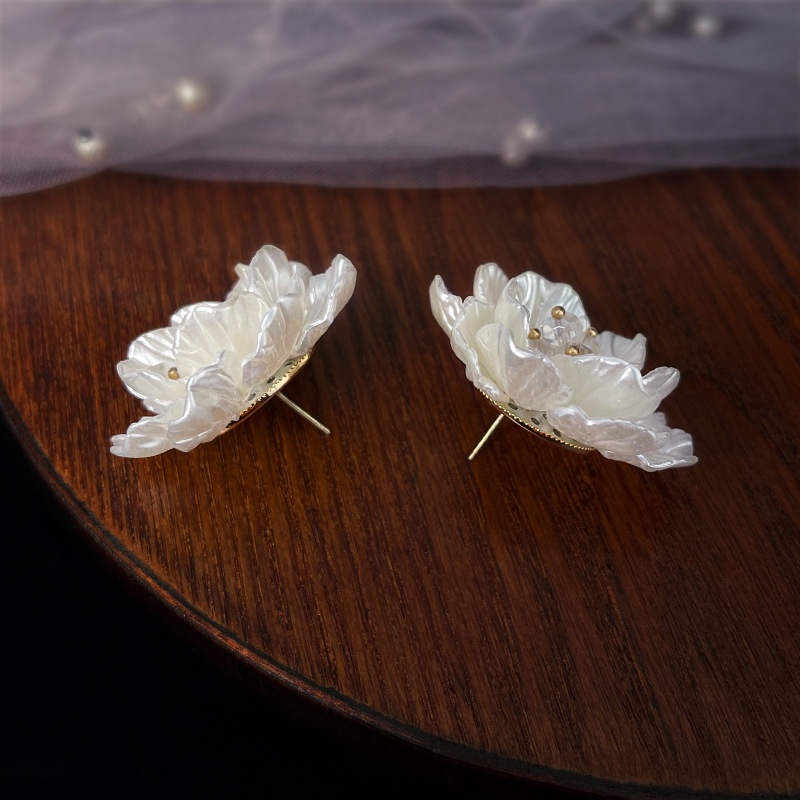 Detail Anting Tusuk Gantung Desain Bunga Putih Gaya Korea Cantik Untuk Pengantin Wanita