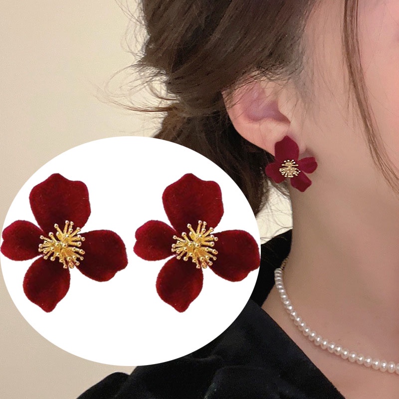 Detail Anting Tusuk Gantung Temperament Bahan Velvet Desain Bunga Gaya Retromusim Gugurdingineleganunik Untuk Wanita