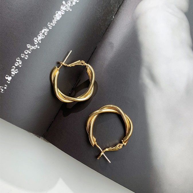 Detail Anting Tusuk Gantung temperament Desain Anyaman Silang Gaya Simplekeren Untuk Wanita