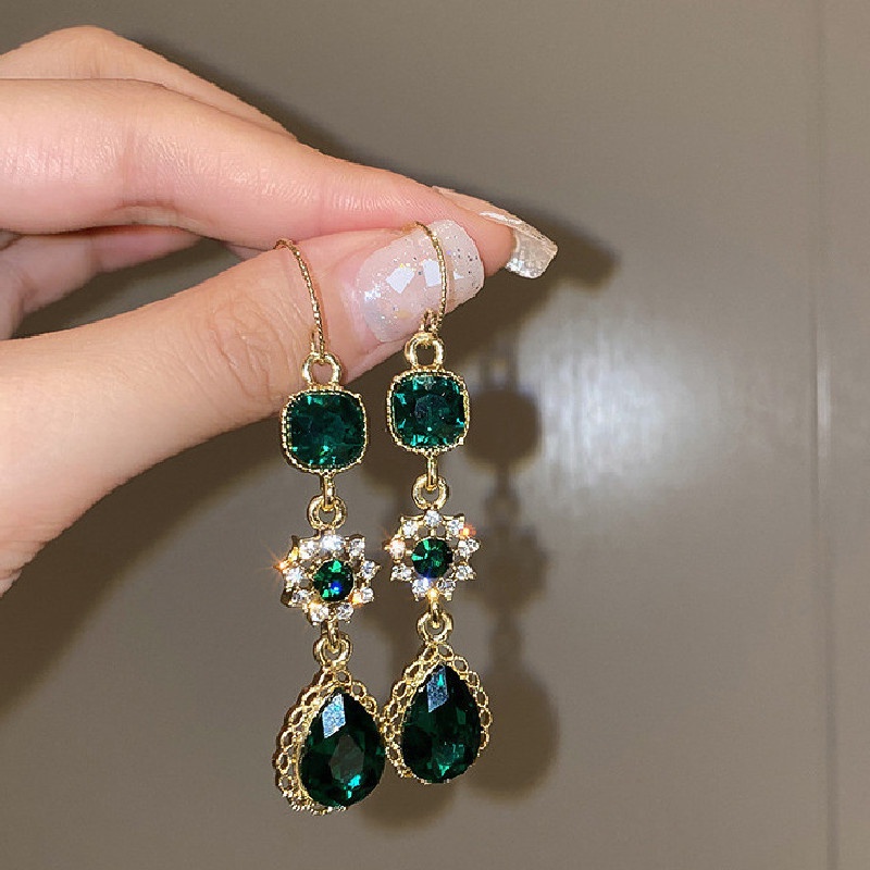 Detail Anting Tusuk Gantung Temperament Desain Tetesan Air Hijau Hias Zircon Gaya Korearetromewah Untuk Wanita