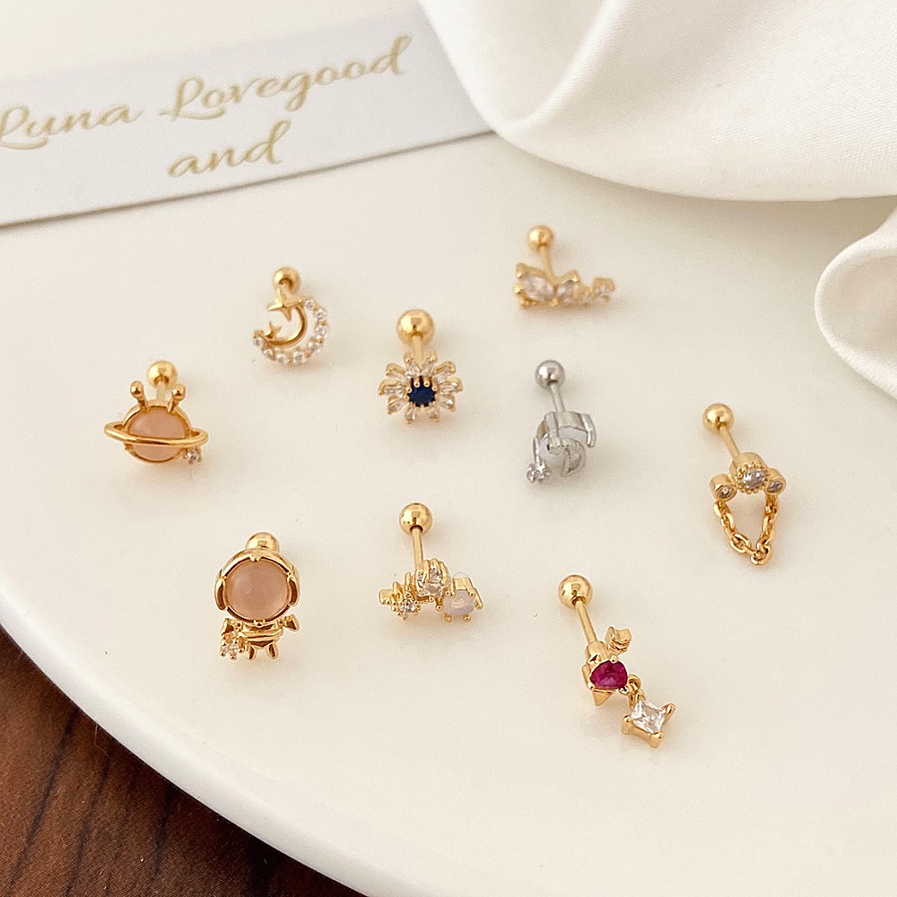 Detail Anting Tusuk Gantung Wanita Desain Bunga / Bintang / Hati / Beruang Mini Hias Berlian Gaya Korea / Mewah Untuk Hadiah