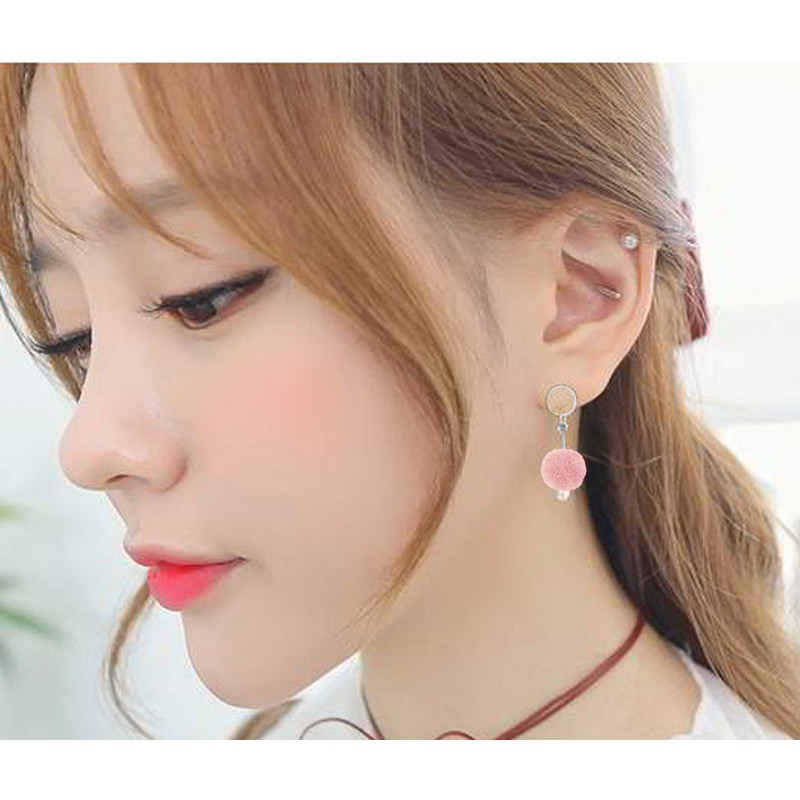 Detail Anting Tusuk Kekinian Style Korea Bisa Untuk Hijab Model Pompom Kombinasi Mutiara Miss 105