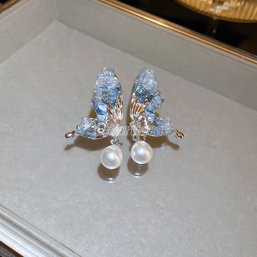 Detail Anting Tusuk Model Kupu-Kupu Dengan Kristal Mutiara Kualitas Tinggi Untuk Wanita