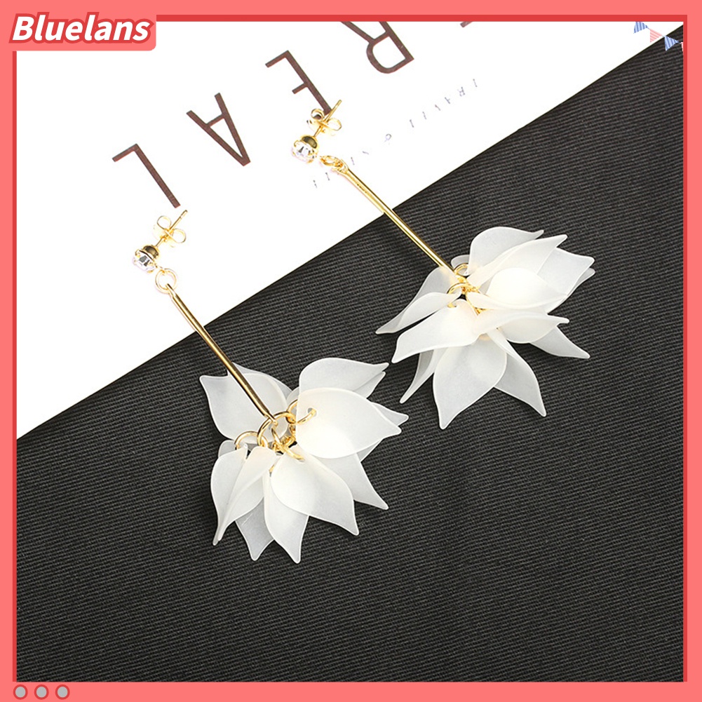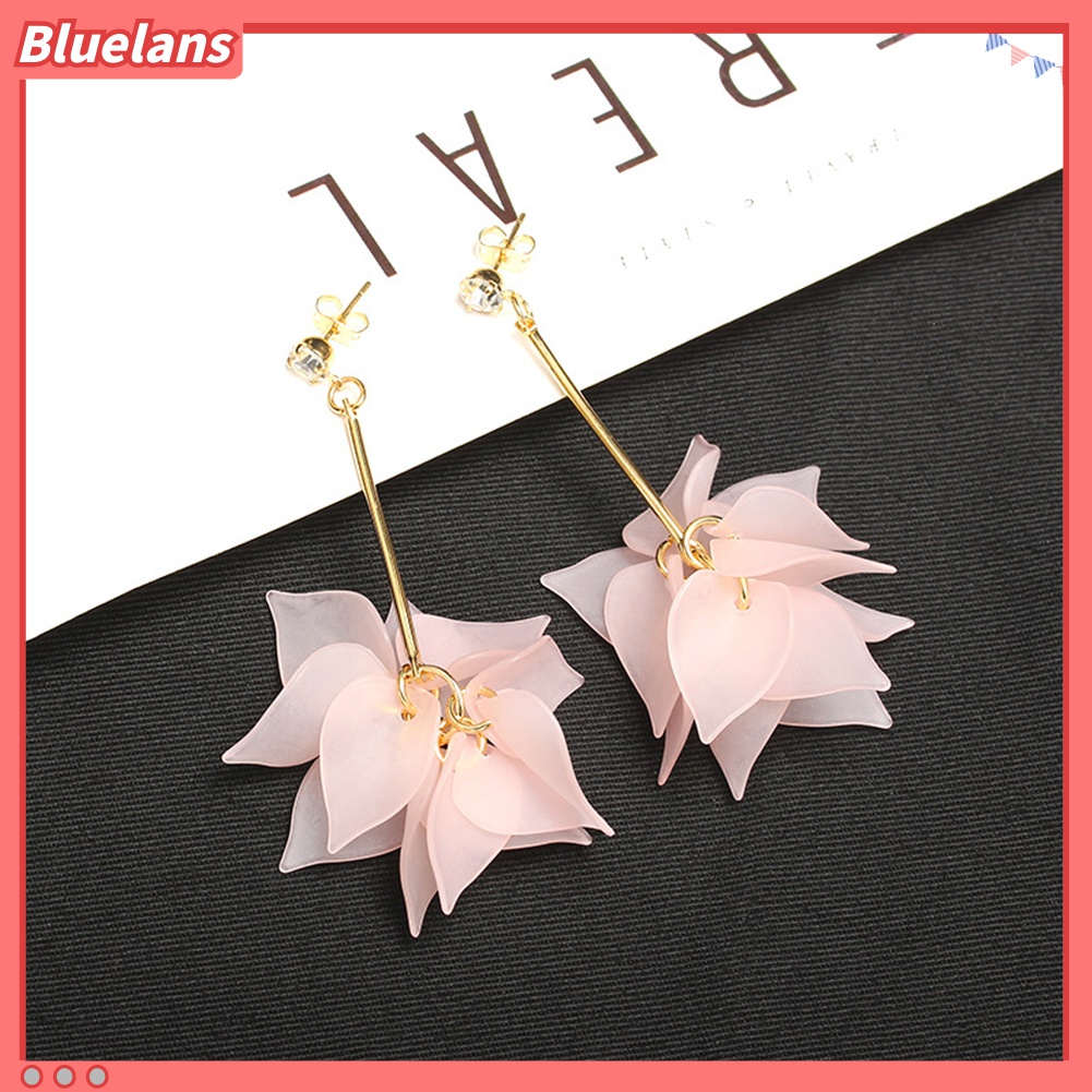 Detail Anting Tusuk Model Rumbai Panjang Bentuk Bunga Aksen Berlian Imitasi Untuk Wanita