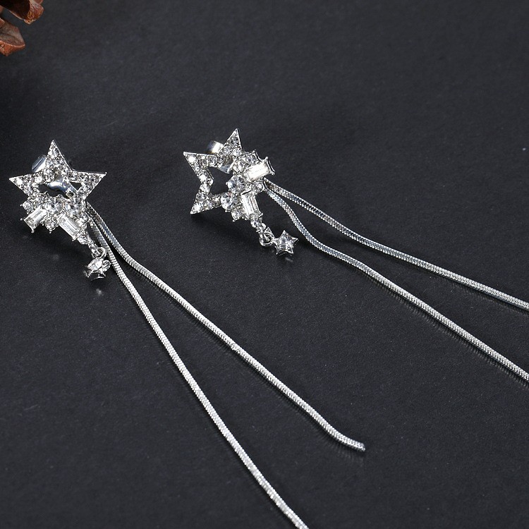 Detail Anting Tusuk Model Rumbai Bintang Berkilau untuk Wanita