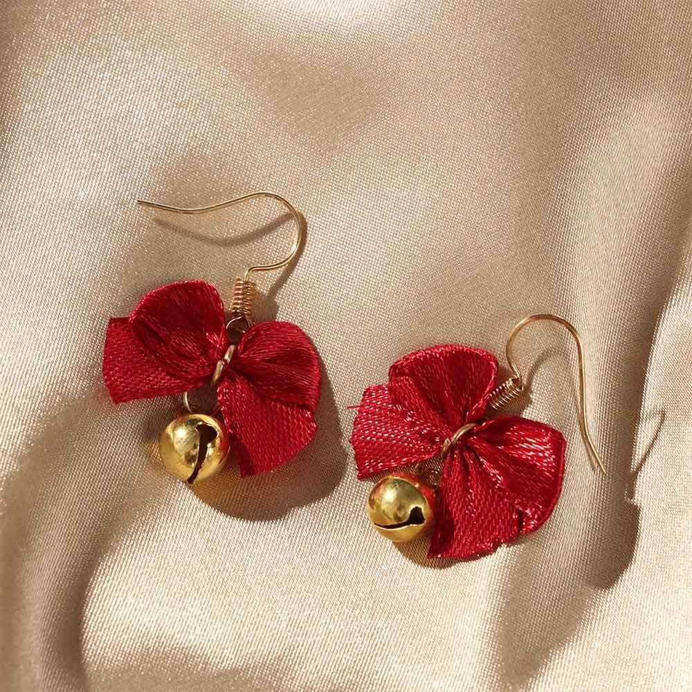 Paket termasuk: 1 Pasang Anting Pejantan Rusa Anting Pejantan Natal Xams Anting-anting Merah Busur Bel Hadiah Wanita Perhiasan Dekorasi Pesta