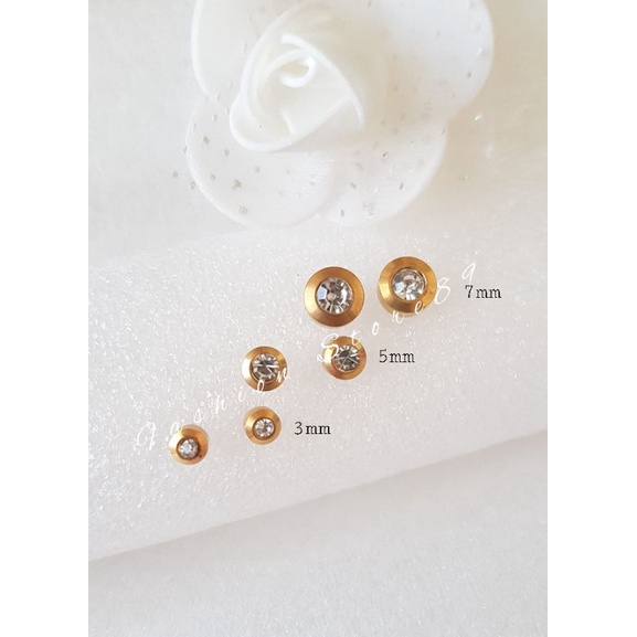 Anting Tusuk Permata Import Titanium Varian Warna : Gold Model : Anting Tusuk Tersedia Pilihan Ukuran : 3mm / 5mm / 7mm Bahan Titanium Kualitas Antikarat ✔️