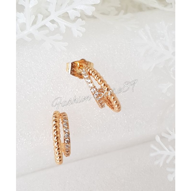 Anting Double Ring permata Model Anting Tusuk Perhiasan lapis emas 18k Merk Yaxiya 💯% lebih berkualitas dan lebih Awet