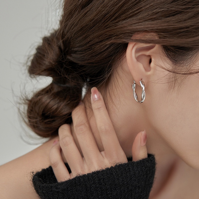 Detail Anting Tusuk Sterling Silver 925 Bentuk Lingkaran Gaya Korea Untuk Wanita
