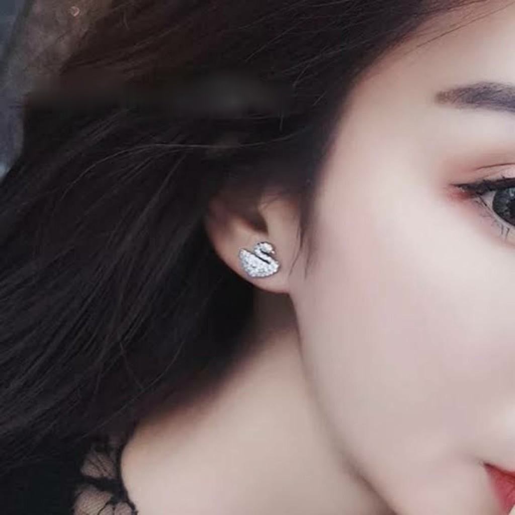 Detail Anting Tusuk Titanium Swan Kristal Altifisial Putih Merah dan Hitam Rose Gold