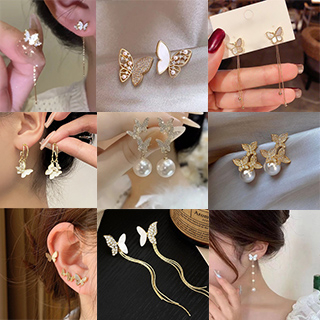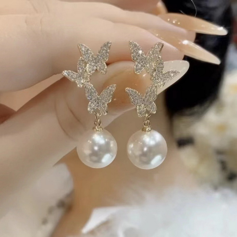 Detail Anting Versi Korea, Kupu-Kupu, Mutiara, Rumbai fashion Bertabur Berlian, Grosir Untuk Produsen Aksesori Wanita