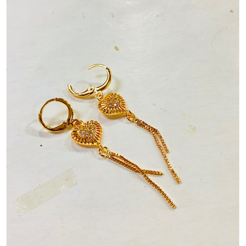 Detail Anting wanita anting gantung pernata tetes air lapis emas