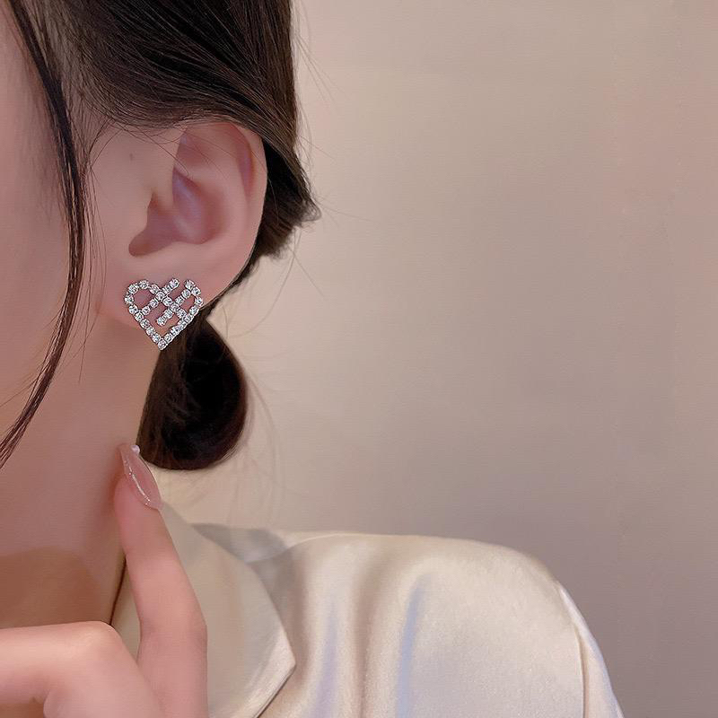 Detail Anting Wanita Love Mata Tanam Korea Elegan Fashion Style Rodium