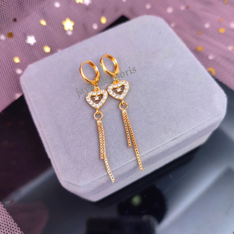 anting wanita titanium gold motip jurai love lapis emas 24k anting karat