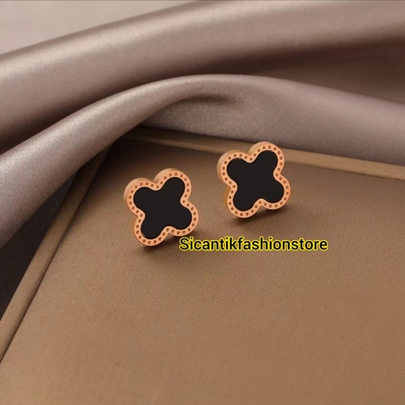 Detail { Bayar Ditempat } Anting Titanium Wanita Terbaru Anting Tusuk Clover Hitam Anting Wanita Korea Kekinian Anti Karat Tidak Luntur
