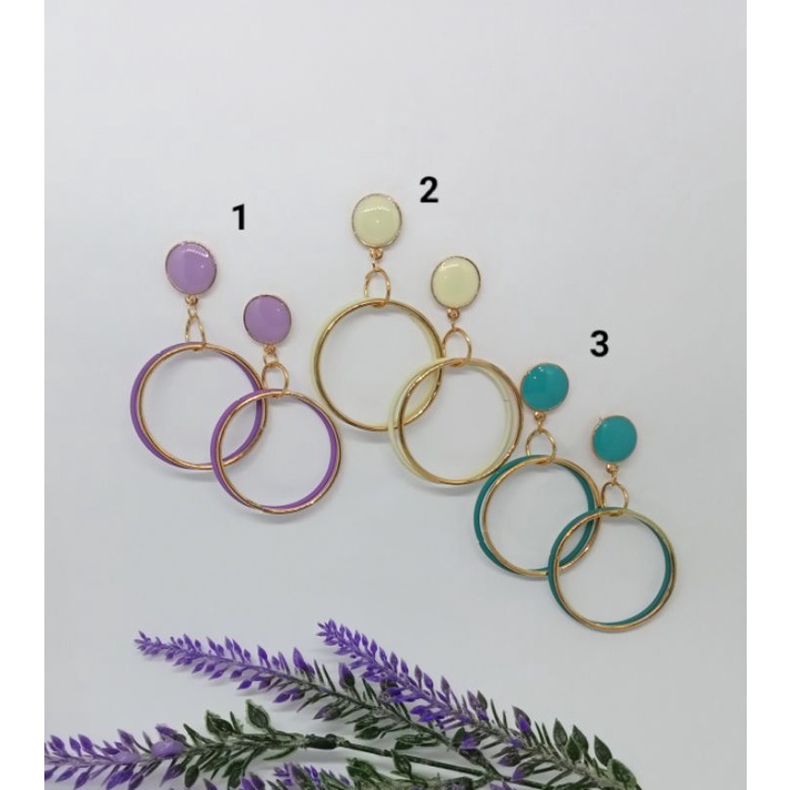 Detail Anting warna-warni model melingkar terbaru fashion wanita