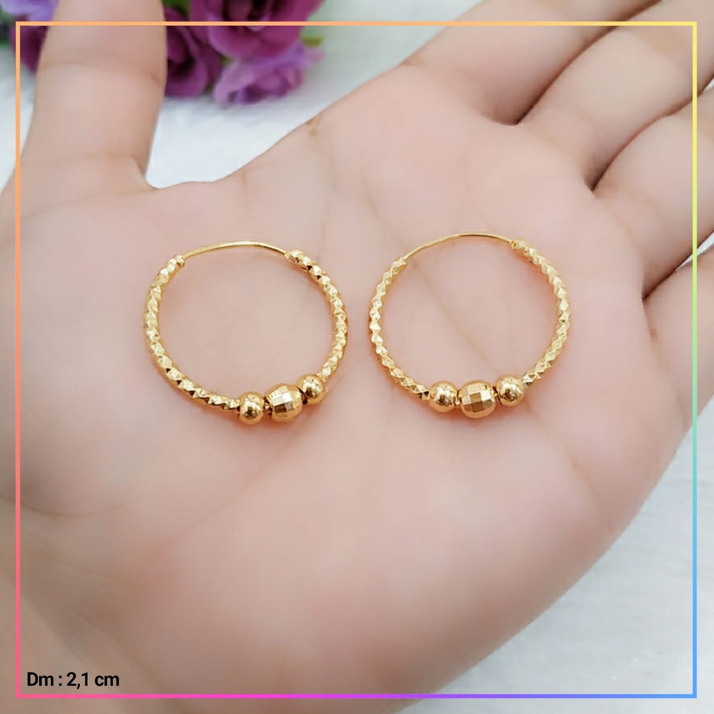 Detail Anting xuping anting dewasa bulat polos simpel perhiasan lapis emas AT 311
