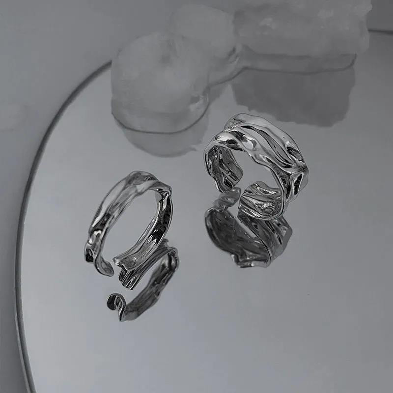 Cincin Pasangan Tidak Teratur Pembukaan Lanjutan Desain yang Dapat Disesuaikan Cincin Kepribadian Fashion