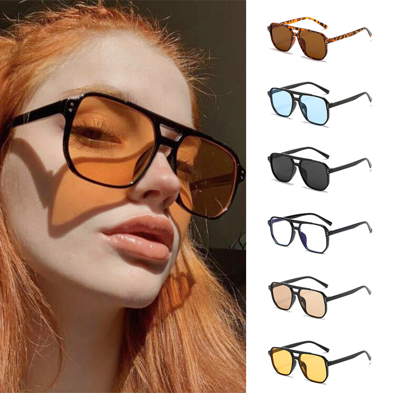 [antop] Double Beam Bingkai Besar Trendy Retro Modis Kacamata Hitam Untuk Wanita Kacamata Hitam Kotak