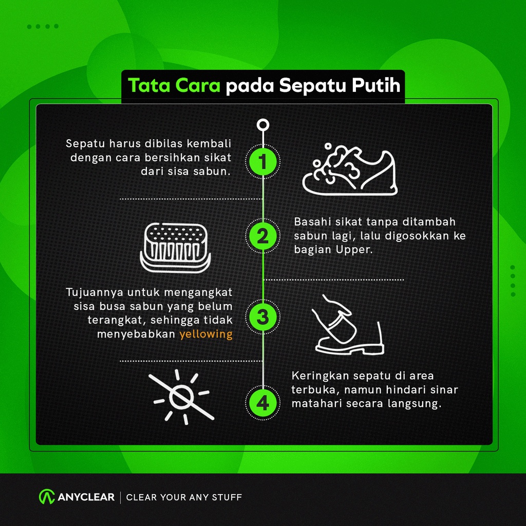 ANYCLEAR merupakan produk yang sangat cocok untuk kalian yang sayang dengan barang-barang seperti sepatu, tas, bahkan topi dengan segala jenis bahan mulai dari canvas, leather, suede, denim, nubuck dan lain sebagainya. Jangan biarin barangmu kotor dan rusak begitu aja ya, yuk saatnya rawat bersama kami💚