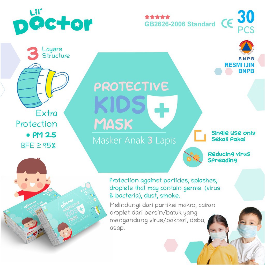 Keunggulan LilDoctor Protective Face Mask 3'Play ini adalah: - Masker pelindung dengan 3 lapis - Terdapat 2 buah earloop untuk dipasang pada telinga - Desain serta bentuk yang pas dengan wajah sehingga nyaman saat dipakai - Melindungi dari partikel makro, cairan droplet dari bersin / batuk, debu dan asap - Mengurangi penyebaran virus - Diproduksi oleh pabrik yang telah bersertifikat CE - Memiliki ijin resmi BNPB - Standard Test GB2626-2006 - Extra Protection dengan PM 2.5 dan BFE ≥ 95% - Single Use Mask ( Masker sekali pakai)