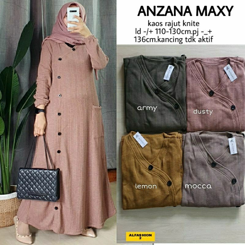 Detail Anzana Maxy, GAMIS WANITA MUSLIM CANTIK MODIS BAHAN KAOS RAJUT KNITE IMPORT FIT XXL LD 110-130 TERMURAH TERLARIS OOTD KEKINIAN