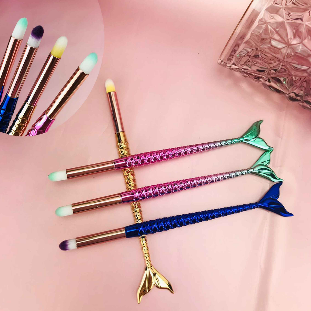 Spesifikasi Produk! Warna : Biru Fungsi: Make Up Kosmetik Perawatan Kecantikan Bahan Pegangan: Gagang Motif Mermaid Bahan Kuas: Bulu Kambing Kode : 111154-1