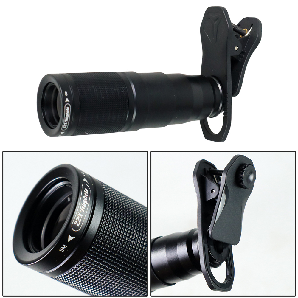 Paket lensa telephoto dari APEXEL Ini merupakan aksesoris sempurna untuk keperluan fotografi ponsel Anda. Aksesoris kamera smartphone ini hadir dengan 4 jenis pilihan lensa, yaitu lensa fisheye 205 derajat, lensa macro, lensa wide angle dan lensa telephoto 22x. Dengan desain klip, lensa kamera tambahan ini bisa Anda gunakan di banyak tipe smartphone Android maupun iPhone.