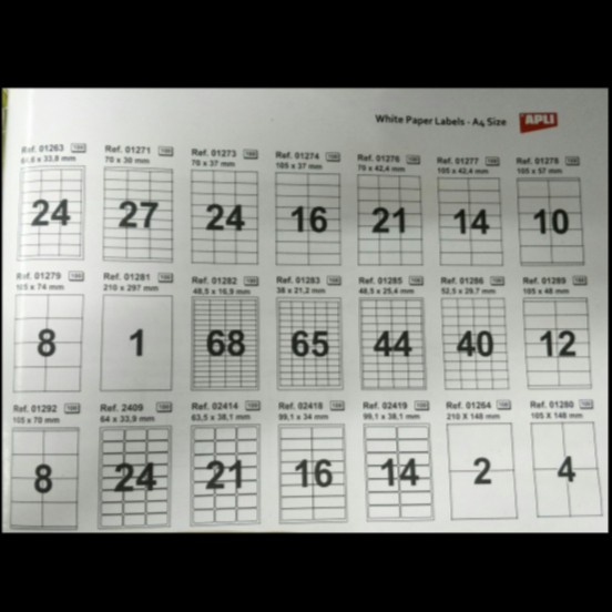 APLI LABEL A4 64,6 X 33,8 MM 2.400 LABEL REF 01263 (IMPORT)APLI LABEL A4 64,6 X 33,8 MM 2.400 LABEL REF 01263 (IMPORT)