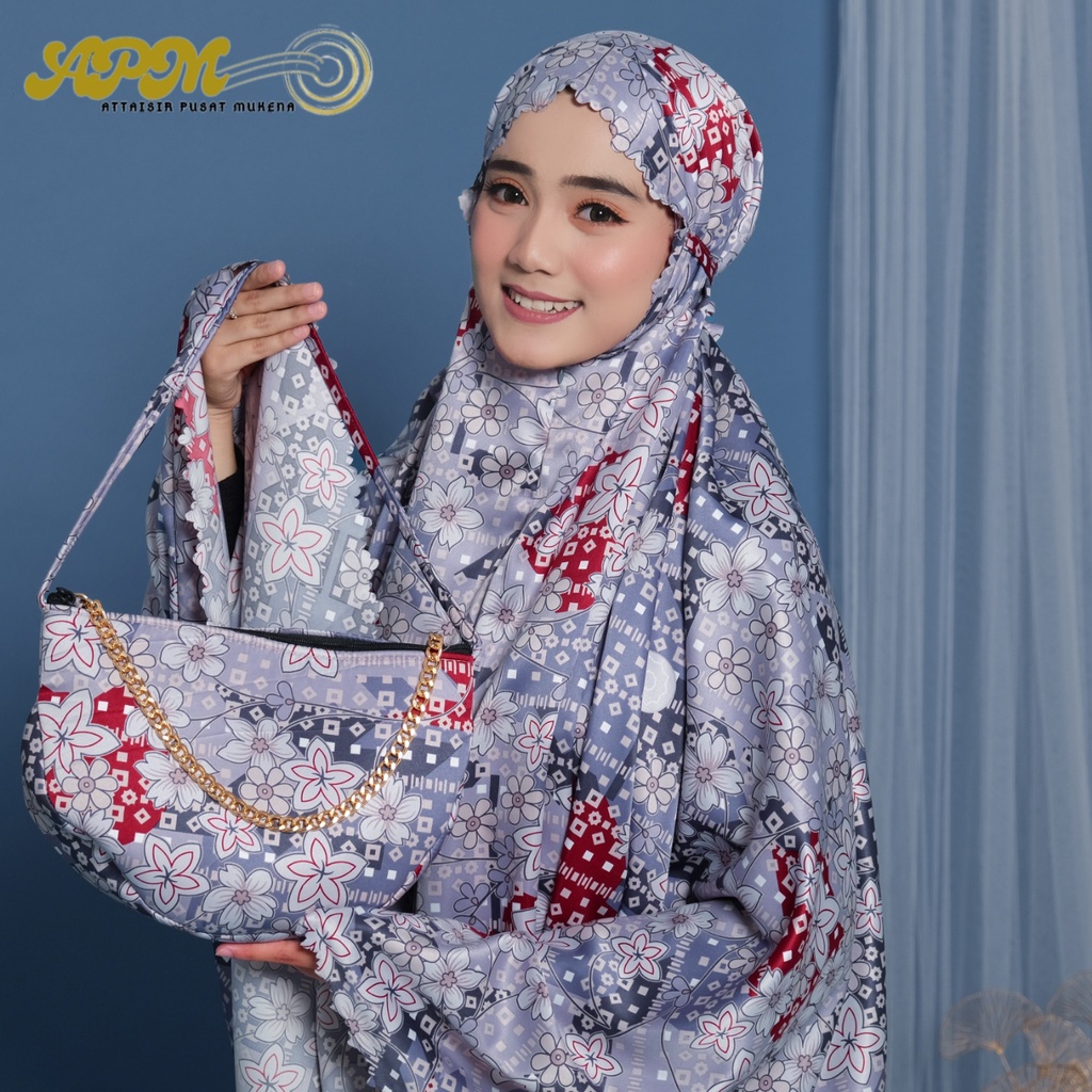 Fashion Muslim > Mukena & Perlengkapan Sholat > Mukena > Apm Mukena - Mukena Dewasa Ashlina Bahan Silk Motif 2in1 Laser Cut Muat Tinggi Badan 180cm Berat Badan 90kg Premium